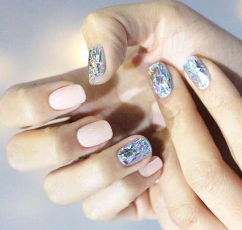 Для придания ногтям эффекта сияния, как у бриллианта, используется серебристая фольга.