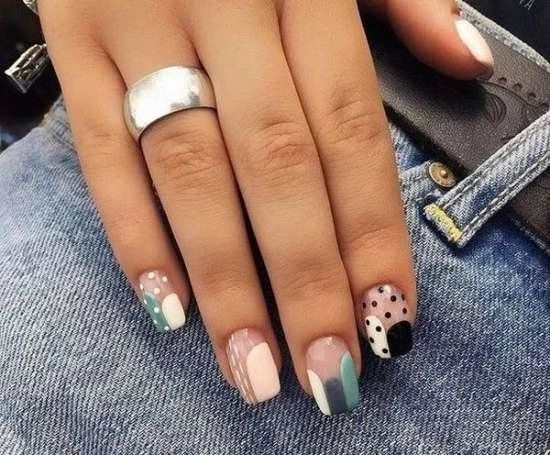 Мастера ногтевого сервиса комбинируют оттенки, получая самые необычные цветовые решения. Для украшения ногтей могут применяться рисунки или наклейки мелкого размера.