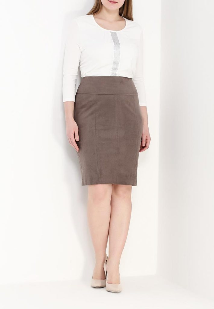 - Юбка может быть в классическом фасоне «карандаш» или в трапециевидном, слегка расширяющемся книзу крое.