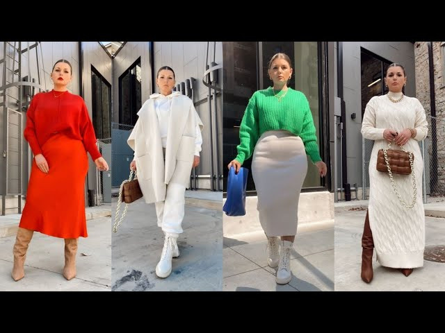- Для холодного сезона станут находкой всевозможные вязаные свитера. Сделать фигуру визуально стройнее поможет мелкая вязка и однотонная расцветка изделия. Рекомендуется подобрать свитера, заканчивающиеся по длине чуть ниже уровня талии, дополненные лаконичным овальным вырезом.